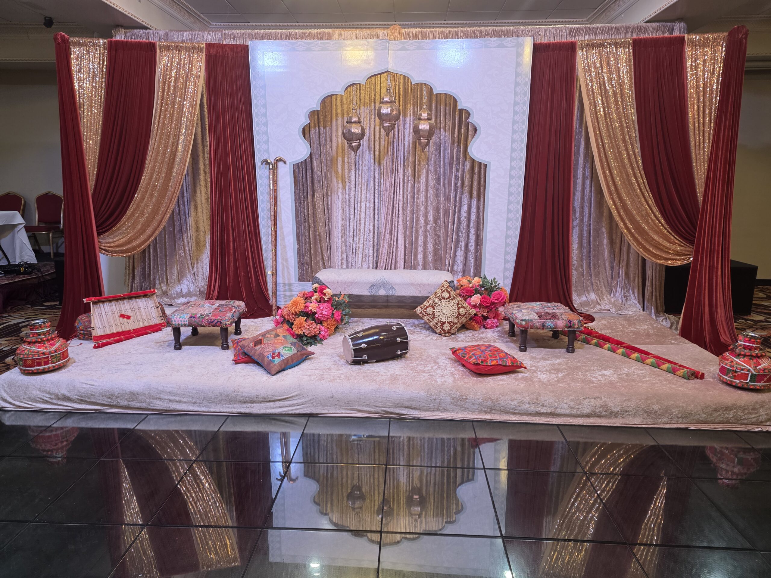To preserve our venue, we do not allow open flames (unless in approved for mandap etc.), sparklers, confetti, or adhesives on the walls.