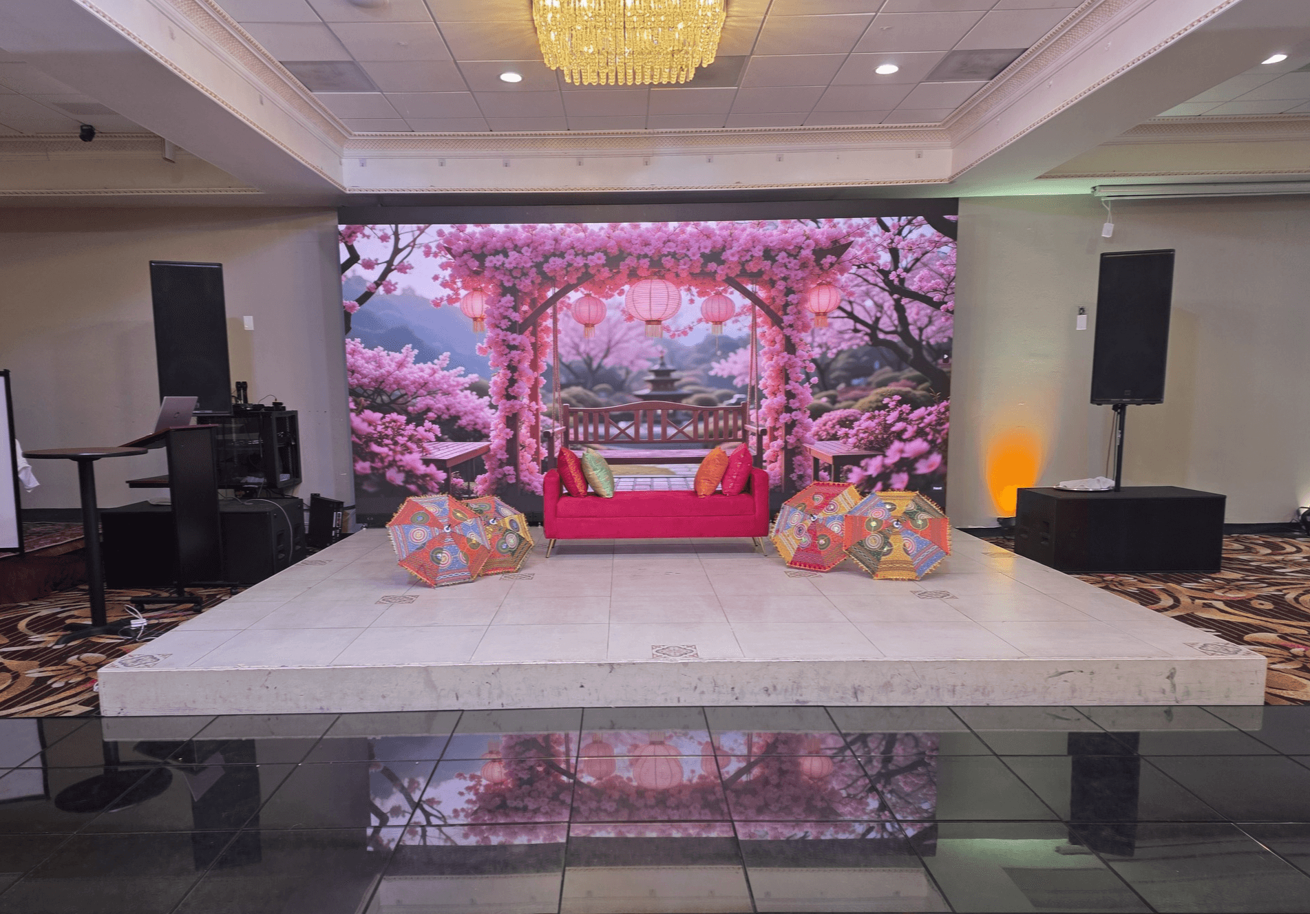 A majestic setting for large-scale weddings and corporate galas. Featuring soaring ceilings, an integrated LED wall, and a custom dance floor. Whether it’s a Sangeet for 300+ or a professional seminar, the Grand Hall offers unparalleled scale and sophistication